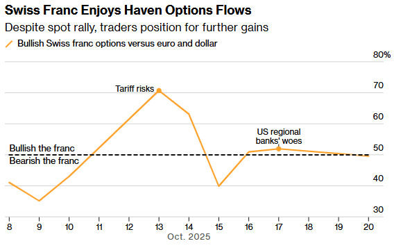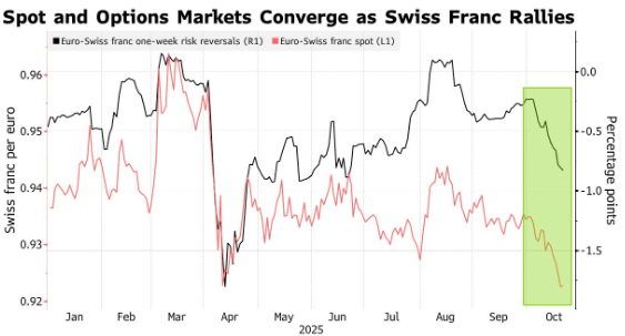 套期保值成本已升至自 8 月中旬以来的最高水平,通过期权购买瑞士法郎的溢价已回升至 6 月份时的水平,此时交易员们正寻求保护以及明确的交易方向。