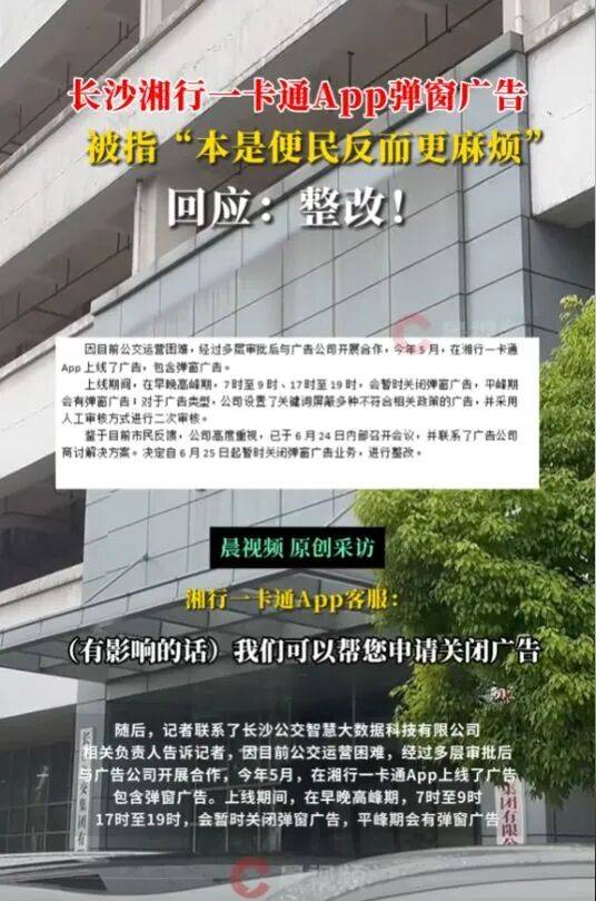 今年6月,长沙湘行一卡通App因频繁出现弹窗广告,被市民指责“本是便民反而更麻烦”。