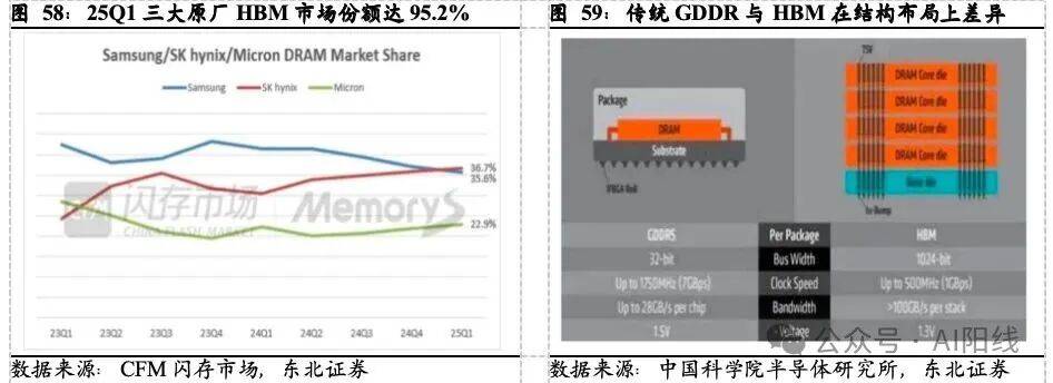 技术变革驱动存储需求质变。AI从训练转向推理意味着计算模式从批量处理转向实时交互,这对存储系统的带宽和延迟提出了近乎苛刻的要求。传统DRAM面临的“存储墙”问题——即内存存取速度严重滞后于处理器计算速度——在AI推理场景下被急剧放大,尤其是处理长文本序列和KV Cache(键值缓存)时,直接导致“推不动、推得慢”的产业瓶颈。HBM技术通过3D堆叠和硅通孔(TSV)工艺将多个DRAM芯片垂直集成,实现了远超传统内存的带宽(HBM3每堆栈带宽高达819 GB/s),从而成为支撑AI推理工作负载的关键。