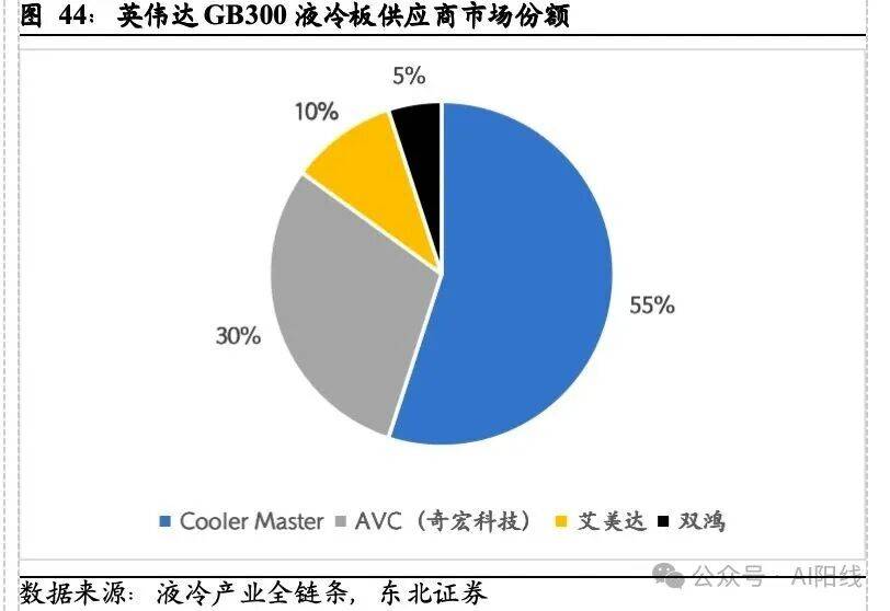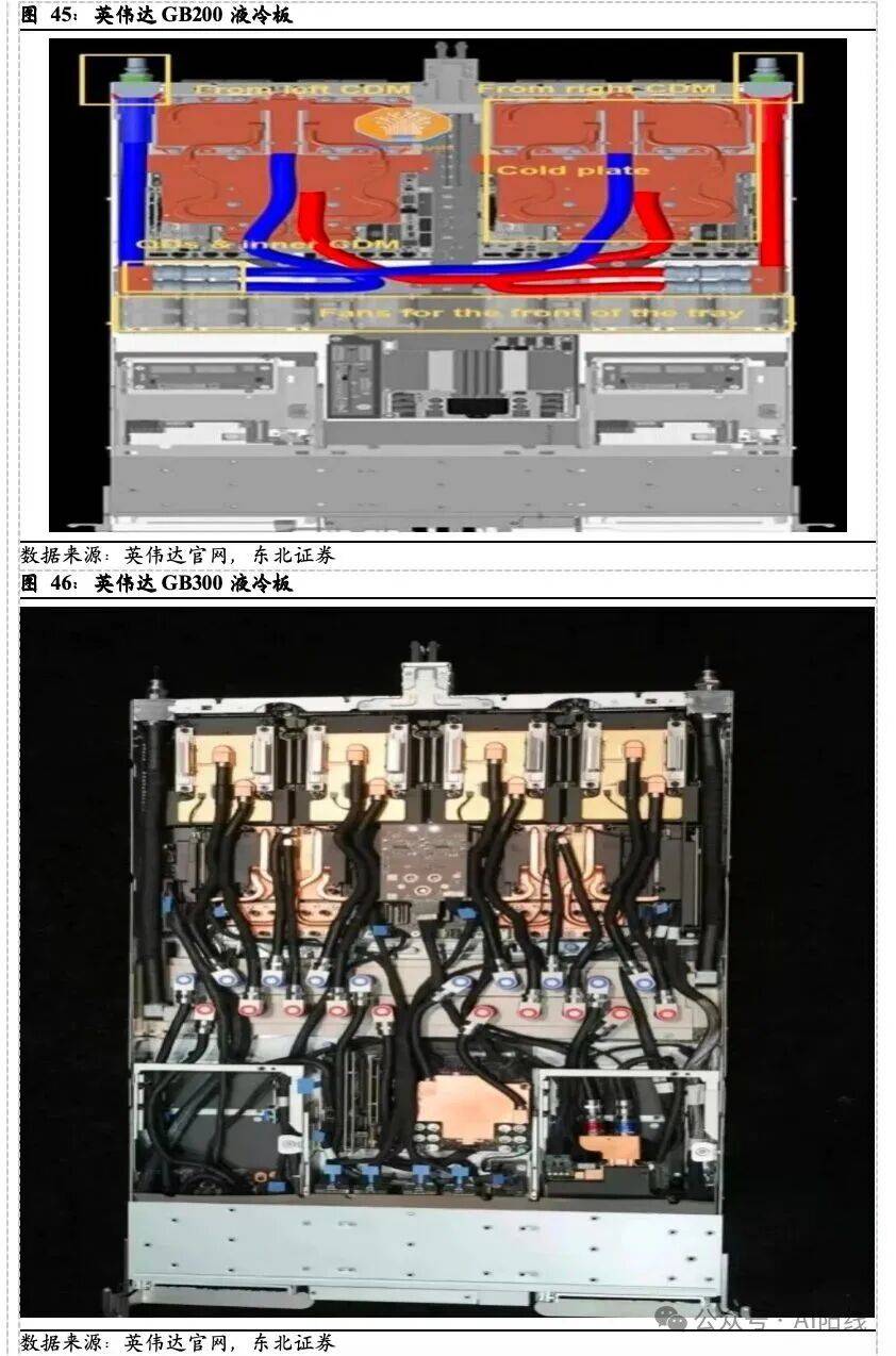Blackwell芯片放量加速液冷渗透,产业链企业迎来新一轮成长窗口。英伟达Blackwell系列芯片的持续出货正成为液冷普及的重要推手。预计2025年Blackwell将占其高端GPU出货的80%以上,尤其是GB200、GB300等平台对液冷依赖度更高,进一步拉动下游液冷配套需求。这一趋势为国内液冷产业链带来结构性成长机会,零部件供应商订单可期,产业发展前景愈发明朗。GB300采用小型液冷板,GB200采用大型液冷板。目前液冷板的结构和材料大致相同,主要是在冷板内部的流道设计上下功夫,通过增加流动面积、提高流体流速等方式,配合水冷头高效带走芯片产生的热量。当前,GB300采用的液冷板是铲齿工艺产品,原材料以铜材为主,制造工艺和精度已十分成熟。