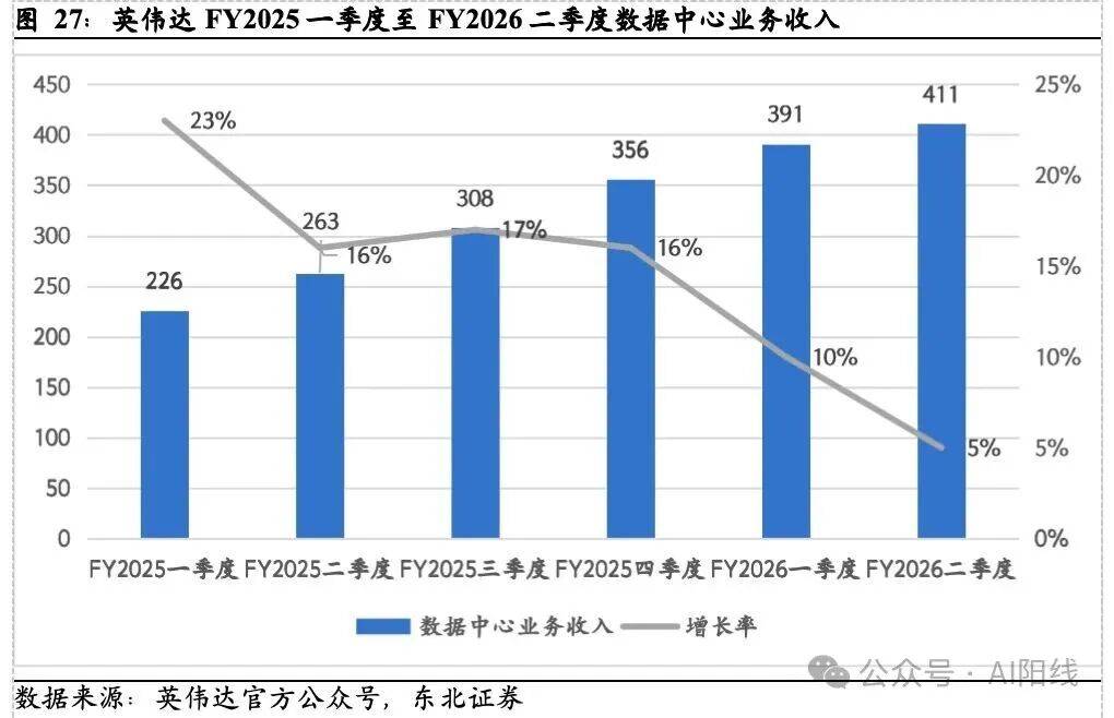 算力、网络、生态三轮驱动,从训练到推理的开启全球扩张。从2025财年第一季度(收入226亿美元,同比激增427%)到2026财年第二季度(收入411亿美元),英伟达数据中心业务的爆炸式增长源于其成功从“芯片供应商”转型为“AI生态构建者”。增长初期由全球云厂商对Hopper(如H100)及新一代Blackwell架构GPU的强劲需求驱动,其H200/B200芯片在MLPerf基准测试中表现亮眼。随后迅速演变为全栈式解决方案的协同发力:专为AI优化的Networking(如Quantum-X800、Spectrum-X800交换机)和软件(超过150家公司集成的NIM微服务)成为关键增长极。期间,业务动力从北美科技巨头扩展至全球主权AI与工业AI项目,例如在丹麦部署1,528个H100 GPU的超级计算机,以及与沙特、阿联酋合作建设Stargate UAE等下一代AI集群。同时,增长引擎从模型训练(如支持xAI配备10万个Hopper GPU的集群)延伸至大规模AI推理,Blackwell Ultra系统在单个节点上为GPT模型实现了每秒150万个Token的业界领先性能。最终,通过GB200系统的全面部署及与思科等伙伴的渠道合作,实现了训练与推理双轮驱动、软硬件生态共同货币化的可持续增长模式。