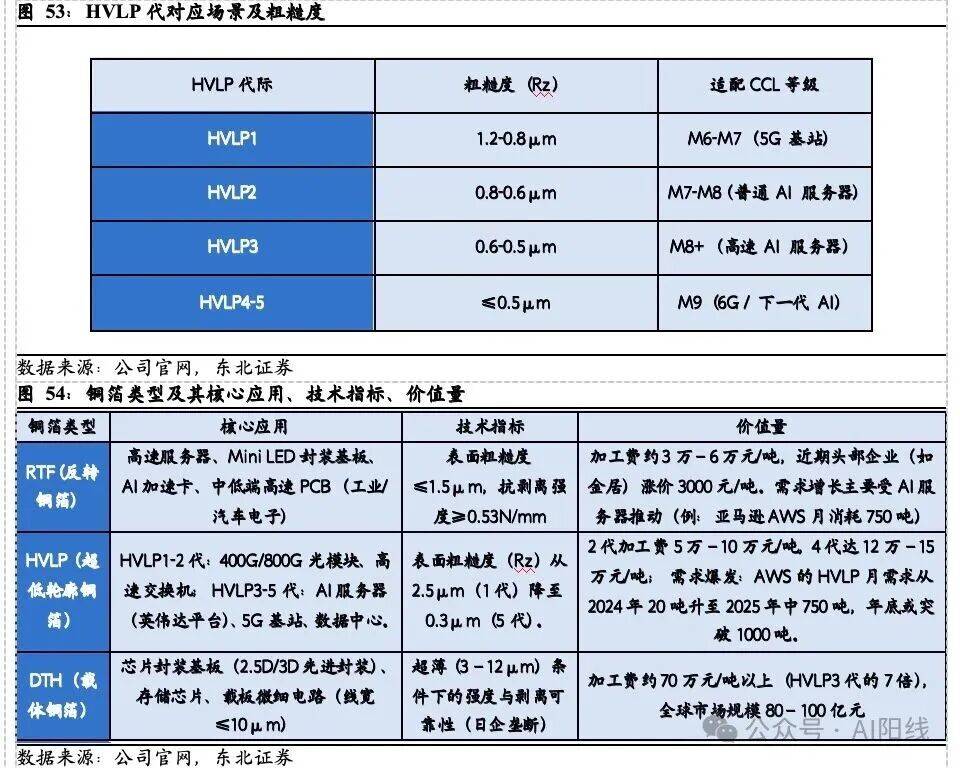 目前全球高端铜箔70%被日韩台企业垄断,三井、古河凭借添加剂配方和阴极辊设备具有垄断性地位。日本:古河、三井垄断HVLP4/5代(占HVLP市场40–50%),主导载体铜箔; 中国台湾:金居、长春化工占RTF市场50.8%,HVLP份额不足30%; 欧洲:卢森堡CFL(被德福收购)为全球高频铜箔市占率第一,唯一非日系高端供应商。 因此,AI需求倒逼国产替代,国内德福科技、铜冠铜箔、隆扬电子凭借各自优势已经开始逐步打破垄断,HVLP加工费从普通铜箔的1-2万/吨飙升到20万/吨,利润非常可观,如德福科技收购了卢森堡一家高端铜箔公司,国内企业在高端场景份额逐步提升。