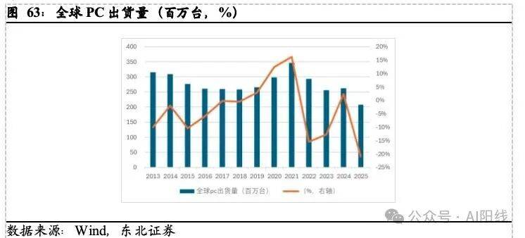新冠疫情催生远程办公和在线教育需求,PC及平板电脑出货量在2020年分别增长12%和13%,服务器需求同步激增。同时,5G手机普及推动单机存储容量向12GB以上演进,NAND位元需求增长率在2021年达30%。供给端受疫情冲击,晶圆产能紧张,导致2022年初存储价格见顶。但随后消费电子需求骤降,库存高企,价格持续下行至2023年底。