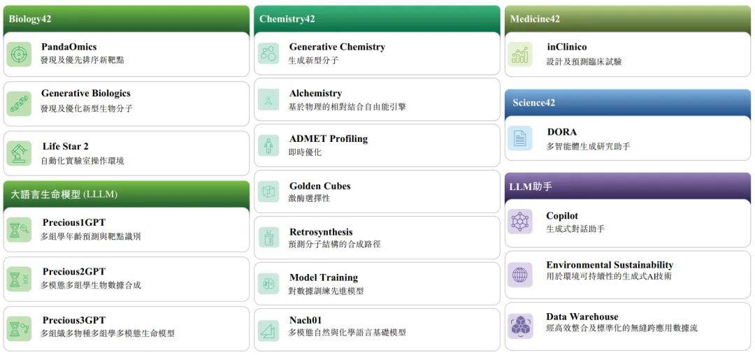 Pharma.AI是一个AI驱动的药物发现及开发平台,提供包括新靶点识别到小分子生成及临床结果预测的端到端服务。Pharma.AI由Biology42、Chemistry42、Medicine42及Science42组成,旨在覆盖整个药物发现和开发过程。