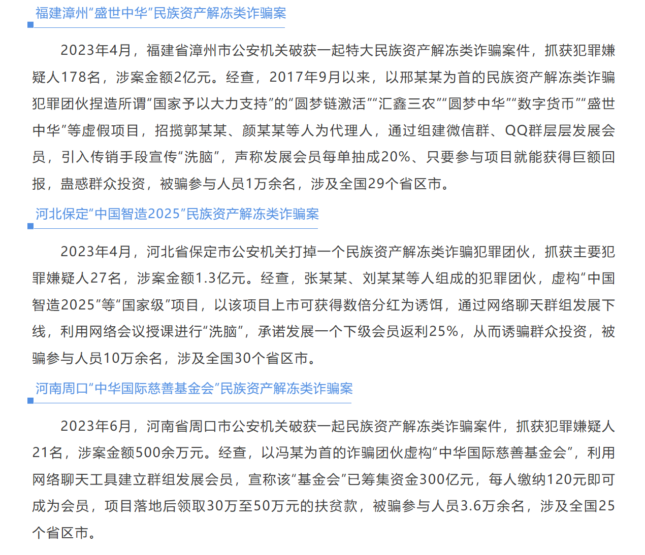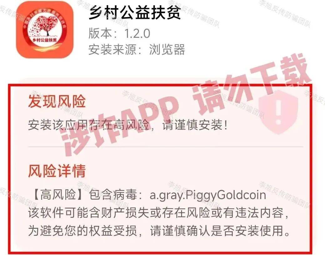 冒充“中国乡村发展志愿服务促进会”,利用“发放扶贫款”忽悠参与者下载“国泰守护”聊天软件,推广虚假投资理财产品,以高额回报忽悠参与者申购。