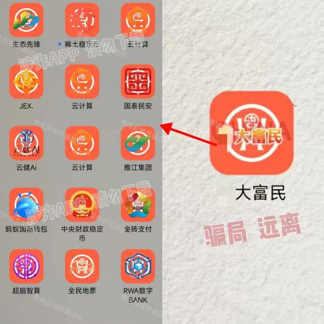 不法分子冒充央行,制作虚假APP,宣称可以“负债清零”、领取“救助金”,并推广各种高返利理财。