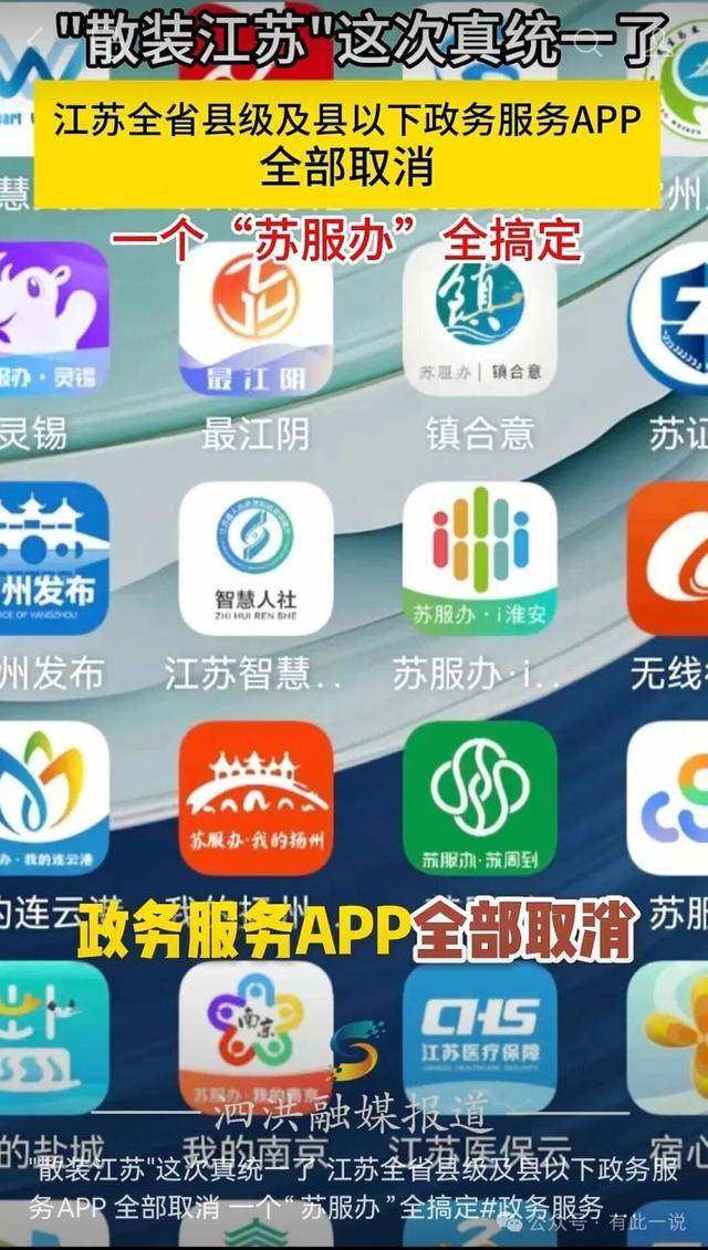 江苏关停县级及县以下政务服务App,确需保留的政务服务应用统一上架至“苏服办”App,从源头杜绝重复折腾。
