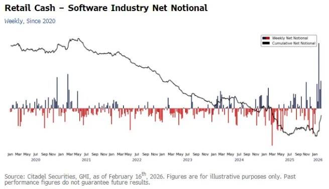 OKX Casino,USDT赌场,加密货币博彩,比特币赌场,USDT投注,区块链博彩,虚拟币赌场,体育竞猜,电子游艺,极速出款智通财经APP获悉,在受人工智能工具威胁的软件股暴跌后,华尔街正在重估其被过度抛售的可能性,而散户投资者正在排队逢低买入。据城堡证券股票及股票衍生品策略主管Scott Rubner称,散户交易员在城堡证券平台上购买软件股票的支出创下历史新高。该公司自 2017 年开始追踪该数据。