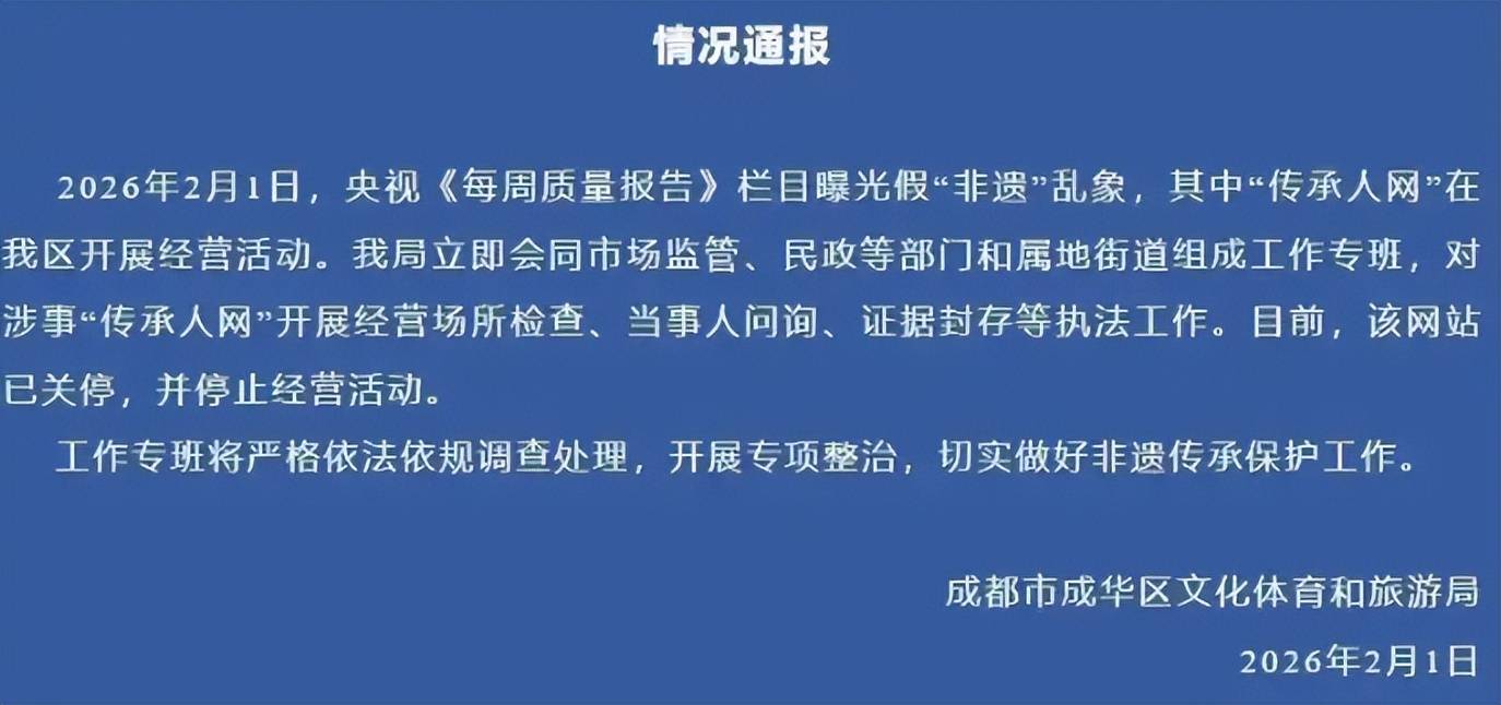 事实上,我国《中华人民共和国非物质文化遗产法》规定,各级文化和旅游主管部门是唯一具备合法资质的非遗认定主体,且非遗认定的全流程均不收取任何费用。