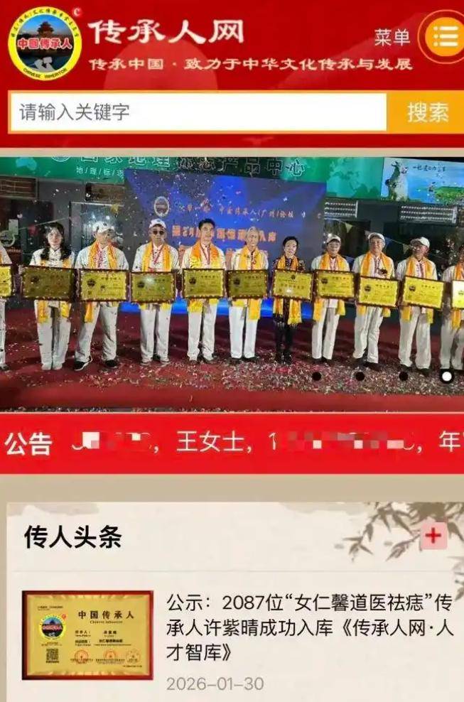 客户只需每年缴纳650元,就能更新非遗认证的宣传内容。同时,这些机构还搭建了模仿正规文旅部门官网样式的“传承人网”。