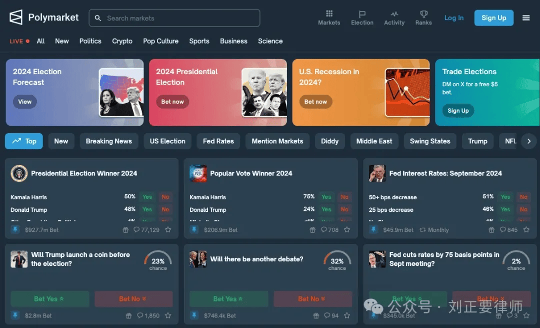 即使没有赌博犯罪、违反行政法律的风险,中国用户还需要谨慎对待另一个法律风险:因政治风险而引发的寻衅滋事的违法、犯罪风险。具体来说就是在中国内地是禁止调侃政治人物的(国外的政治人物除外),但是 Polymarket 平台上以政治人物或政治事件为标的进行押注,很难为中国内地法律所容忍。返回搜狐,查看更多